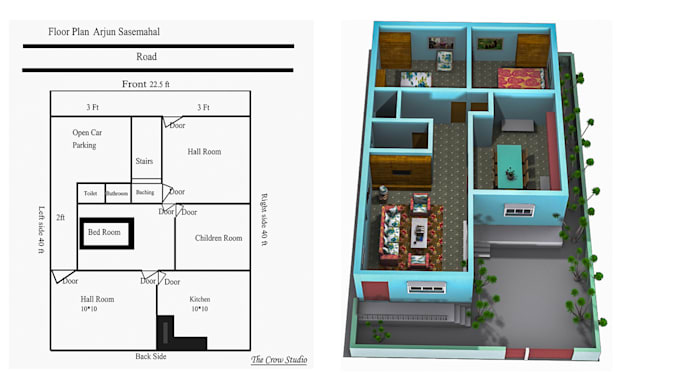 2D And 3D Floor Plan Design- I Will Create 2D or 3D Design from Architectural Drawing.